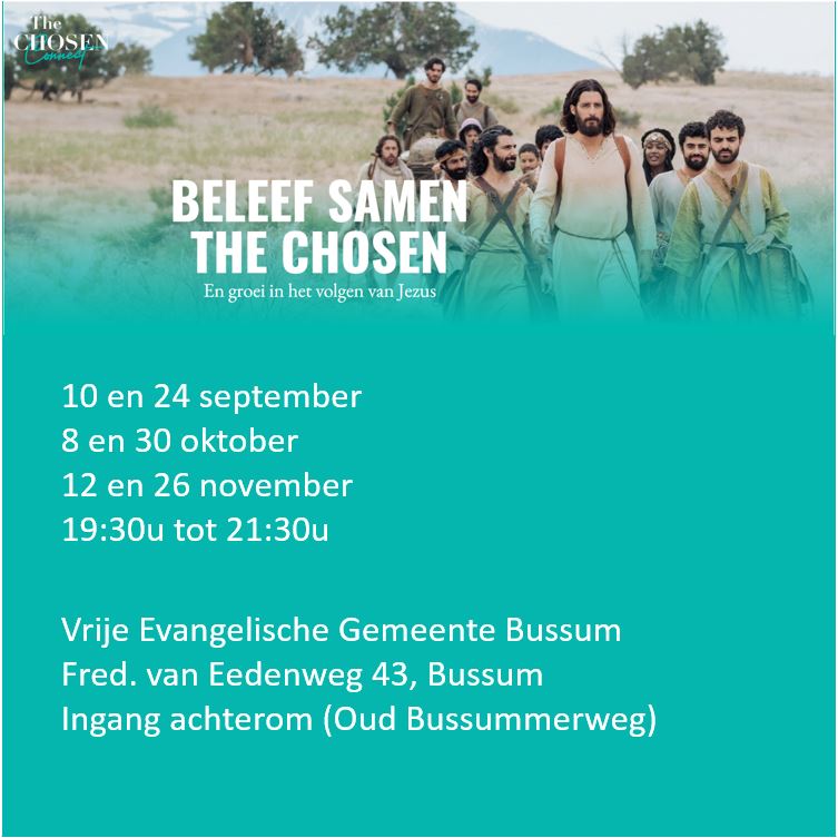 Samen kijken naar The Chosen – een serie over het leven van Jezus. Na elke aflevering is er ruimte om door te praten, vragen te stellen en elkaar te ontmoeten. Iedereen is welkom!